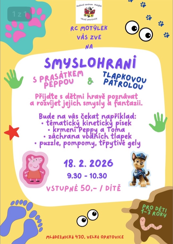 Zveme Vás na SMYSLOHRANÍ s prasátkem Peppou & Tlapkovou patrolou!